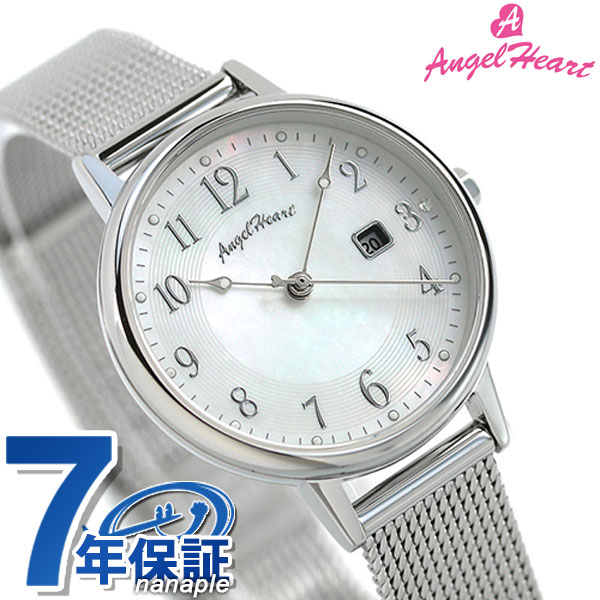 正規品 7年保証キャンペーン エンジェルハート イノセントタイム 橋本環奈コラボモデル 29mm ダイヤモンド スワロフスキー ソーラー レディース 腕時計 ITN29SS AngelHeart Innocent Time Kanna Hashimoto collabo アナログ ホワイトシェル ◆エンジェルハートは橋本環奈さんがイメージキャラクターのブランドです。Angel Heart(エンジェルハート)は2004年にデビュー。アクセサリー感覚で身に着けられるデザインが特徴。デイリー使いにぴったりで、カジュアルなファッションに合わせやすいところもポイント。多くの女性ファッション雑誌に掲載されている注目のブランドです。 文字盤の3時位置にダイヤモンド、りゅうずのトップにクリスタルをあしらったモデル。六角形のりゅうずは、滑りにくくしっかりとつまむことができます。光の当たる角度によって輝きを変える文字盤やどの角度からでも時刻が読みやすいアラビア数字のインデックスもポイント。誕生日や記念日などのプレゼントにもおすすめです。品番ITN29SS駆動方式ソーラー(日本製)素材:ケースステンレススチール素材:ベルトステンレスメッシュ(スライド式)風防サファイアガラス文字盤カラーホワイトシェルベルトカラーシルバーサイズ(縦×横×厚)約35×29×8.5mmかん幅約12mmベルト腕周り約14.5-19cm重さ約38g仕様日常生活用防水(3気圧)日付表示1Pダイヤモンド入り文字盤スワロフスキー・クリスタル入りりゅうず蓄光(針・インデックス)付属品取扱説明書・保証書・Angel Heartオリジナルボックス保証メーカーにて一年保証AngelHeart の商品一覧はこちら♪